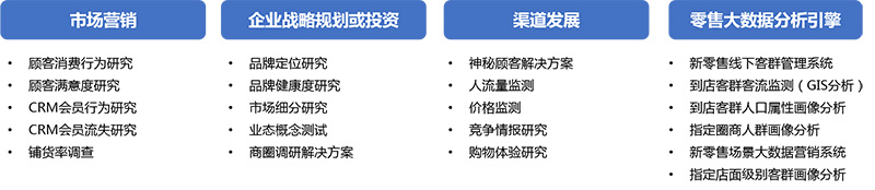 當傳統“人”“貨”“場”的消費場景被迅速重構,消費者體驗和數據驅動的泛零售狀態成為焦點,企業如何通過新零售為品牌賦能成為各行業關注重點。華夏經緯零售研究包括店鋪形象研究、動線研究、布局研究、陳列研究、店內銷售服務研究、消費體驗研究、鋪貨率調查等。
