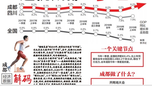 “錯綜復(fù)雜”的2019年,經(jīng)濟(jì)運行迎來“半年報”。這也是各大城市的“半年考”。其中,成都以8.2%的同比增長率,無論在“萬億俱樂部”還是已經(jīng)公布數(shù)據(jù)的副省級城市,均為領(lǐng)跑地位。